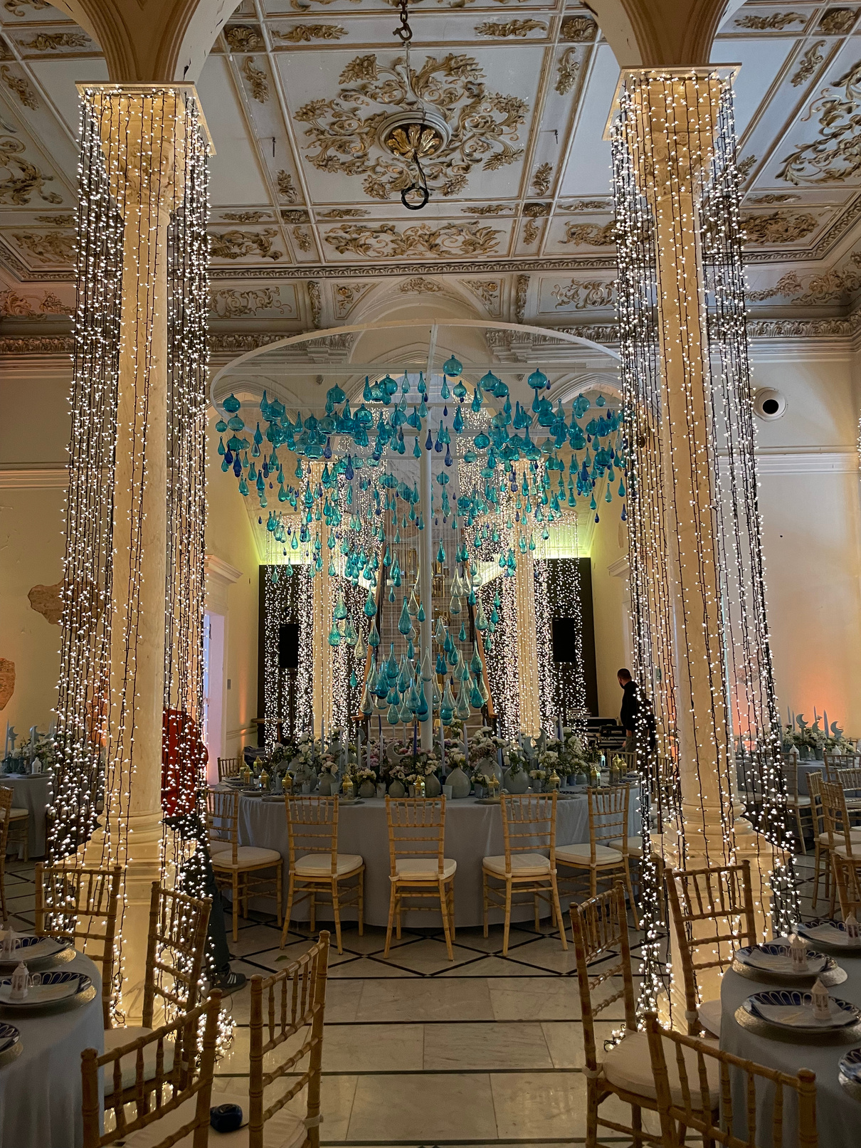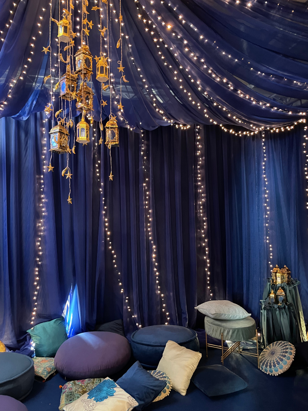 An exquisite private Ramadan dinner, a serene and enchanting ambiance. The event featured intricately designed CNC-cut walls and lanterns, elegant flex walls, and a canopy of twinkling fairy lights, evoking the warmth and spirit of Ramadan. Every detail was thoughtfully crafted to deliver a stunning visual and cultural experience, leaving guests immersed in the beauty and tranquility of the occasion.