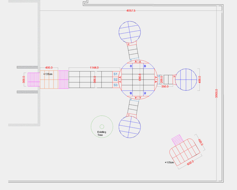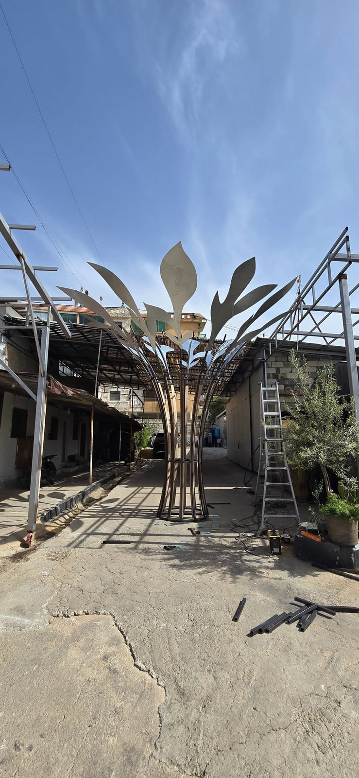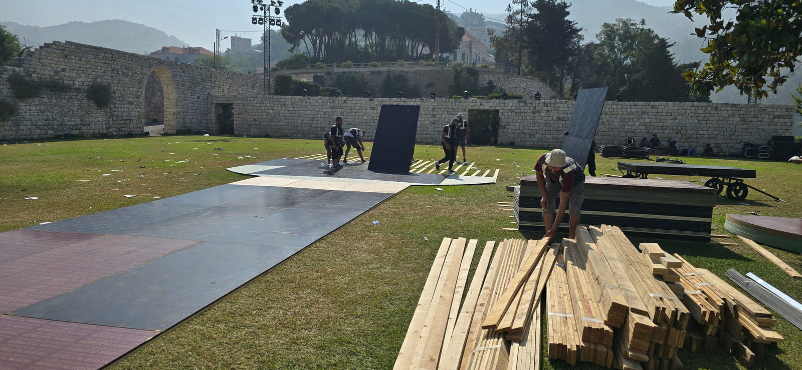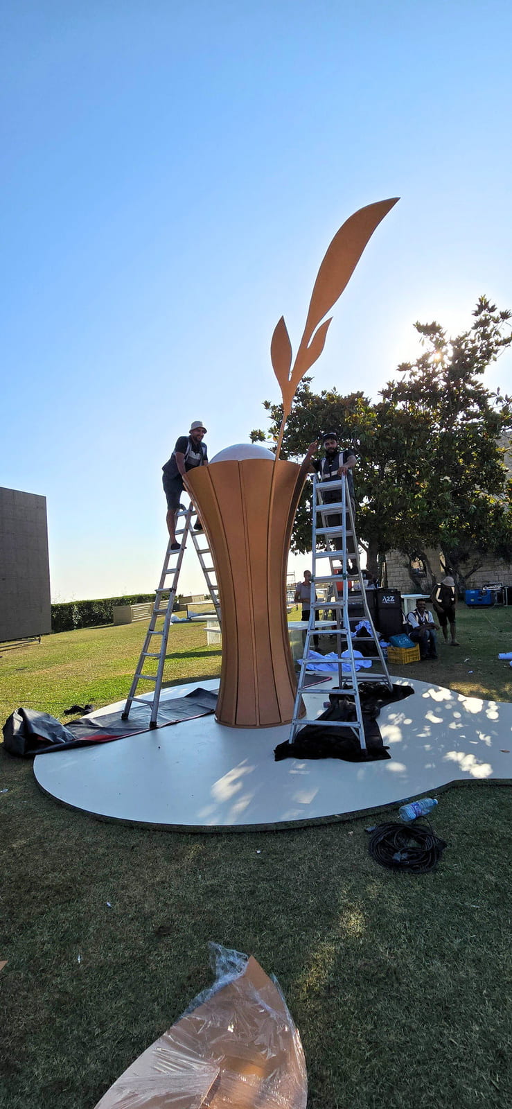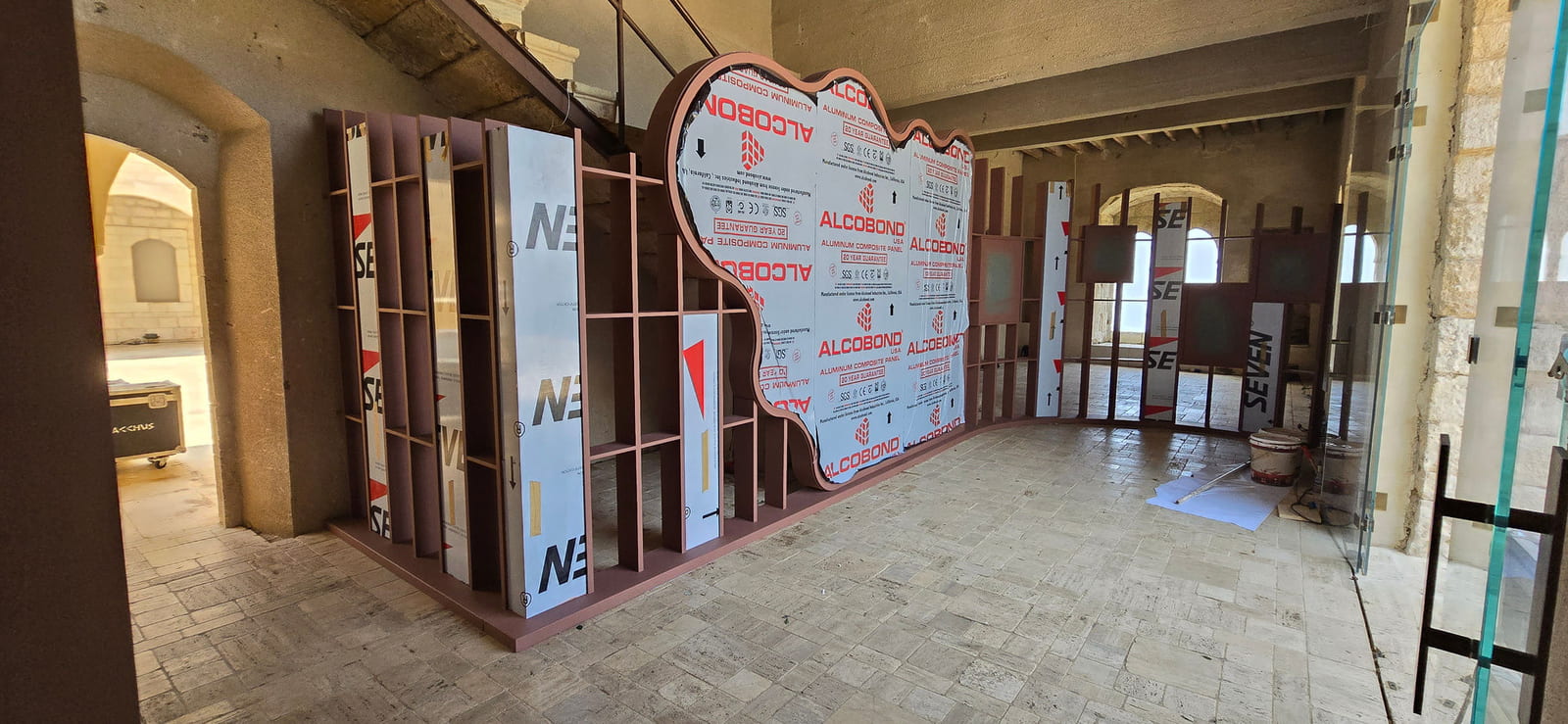 A bespoke outdoor wedding where we built the full infrastructure, including the central dancefloor, flowing catwalks, sculptural tree installations, and a statement oversized chandelier suspended above the stage. The layout structured guest circulation and seating while blending contemporary elements with the venue’s historic architecture, creating a bold yet elegant celebration setting.