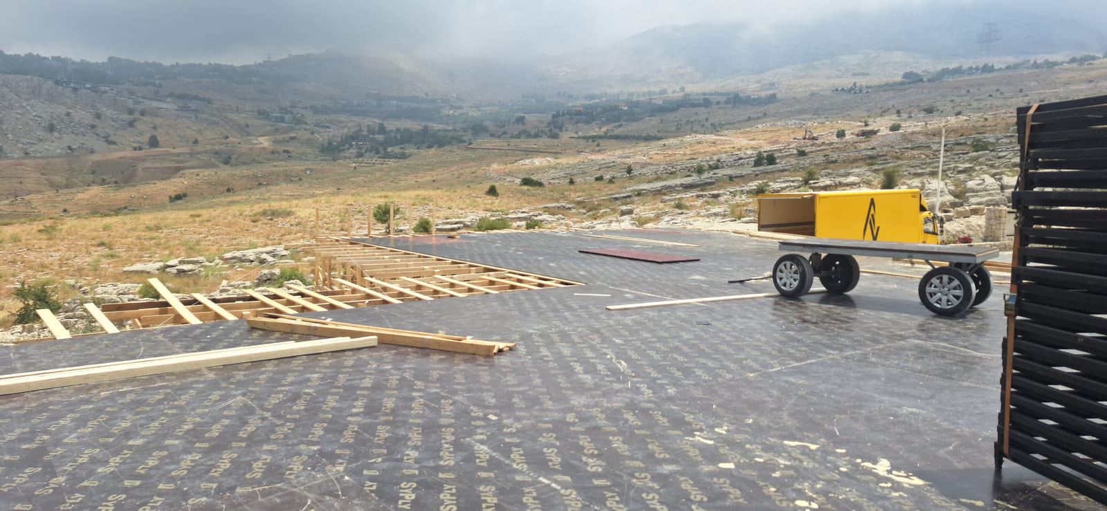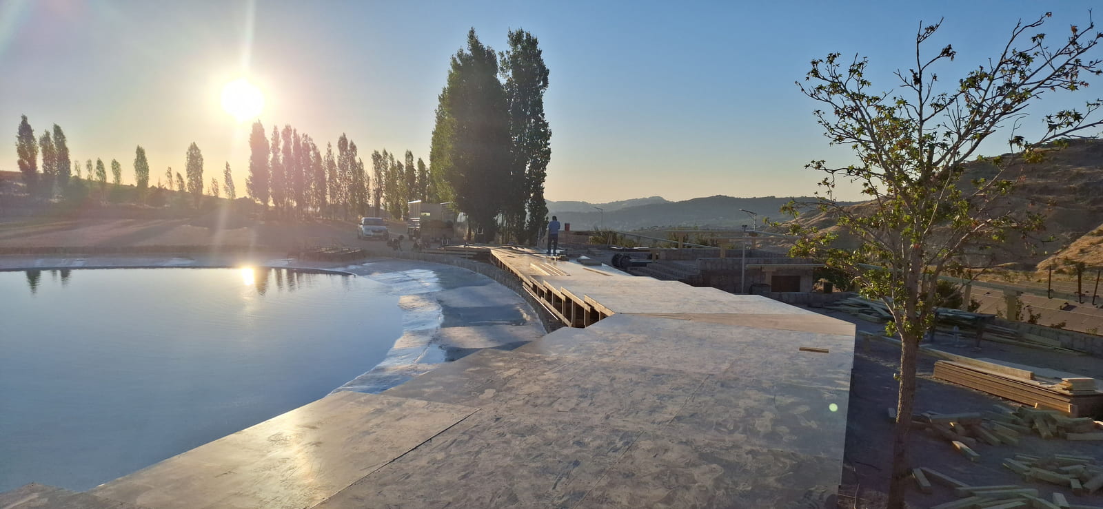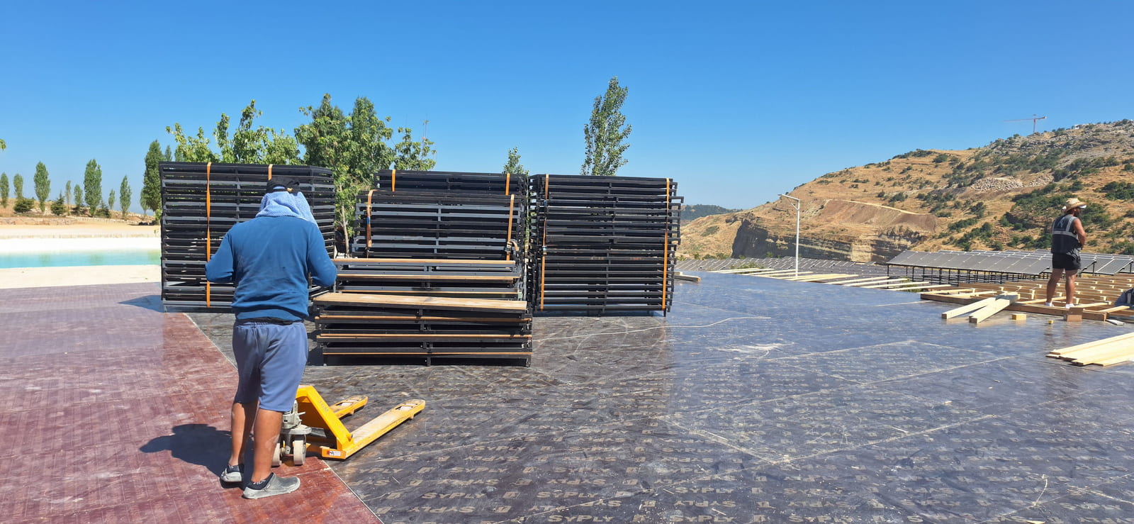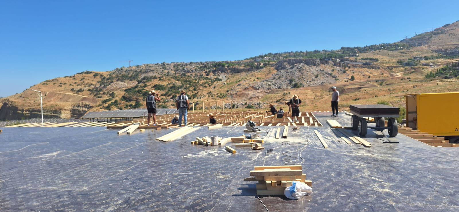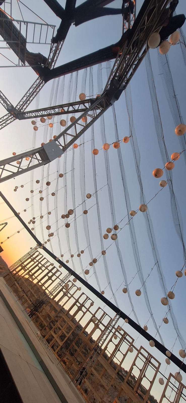 The project involves a full transformation of a 1000 sqm private land into a sophisticated wedding venue. The entire ground area will be covered with elevated wooden flooring panels, creating a seamless and leveled base. Above street level, a 500 sqm wooden structure will rise 3 meters high, connected to the main venue through an elegant bridge – serving as the guest entrance and adding a dramatic arrival experience. The flooring throughout will be finished with reflective black panels, enhancing depth and ambiance, while platform areas will be dressed in rich carpet finishes for contrast and comfort. At the heart of the venue, a central bar featuring a high-gloss reflective finish will act as a statement piece, complemented by a band stage and 4-meter-high mirrored walls, amplifying light, reflections, and the overall grandeur of the space.