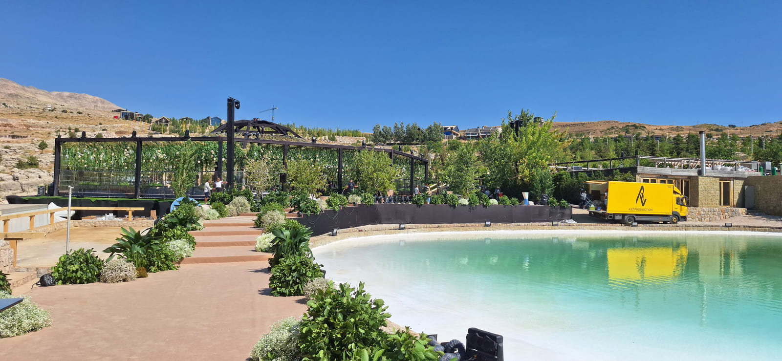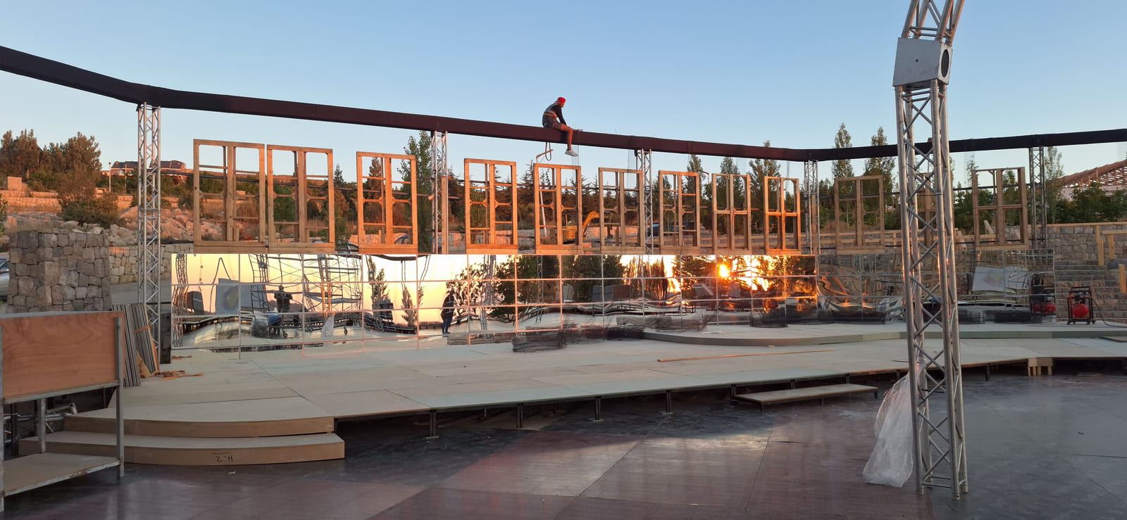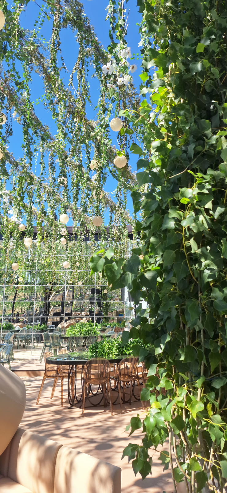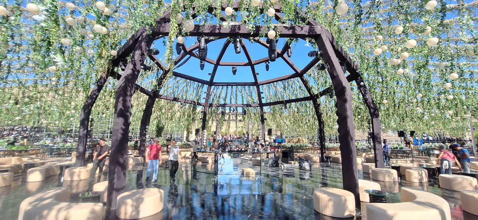 To enhance the sense of space and visual drama, 4-meter-high mirror walls will be installed strategically around the venue. These mirrors will reflect lighting effects, the central bar, and the surrounding greenery - creating an illusion of infinite depth and sophistication.