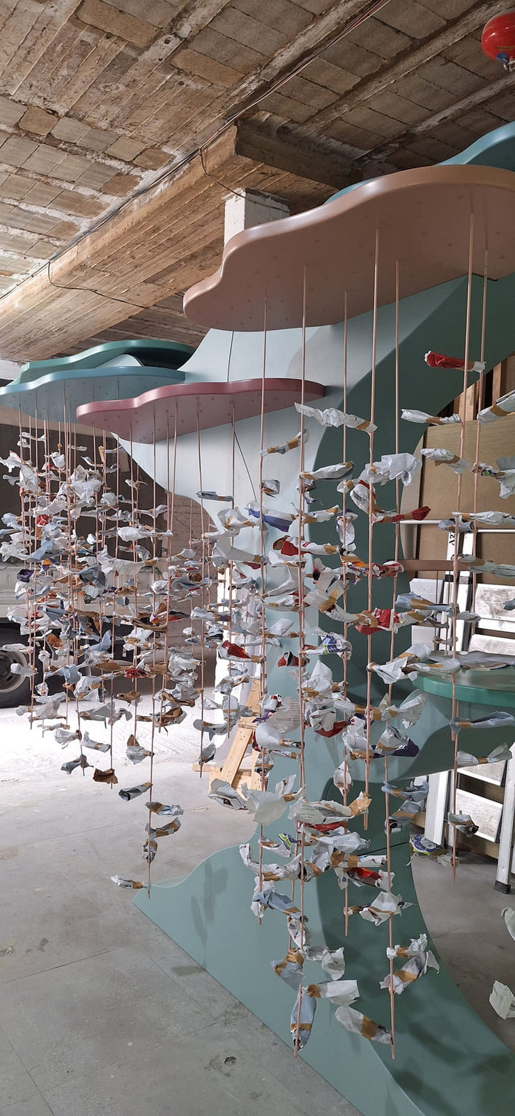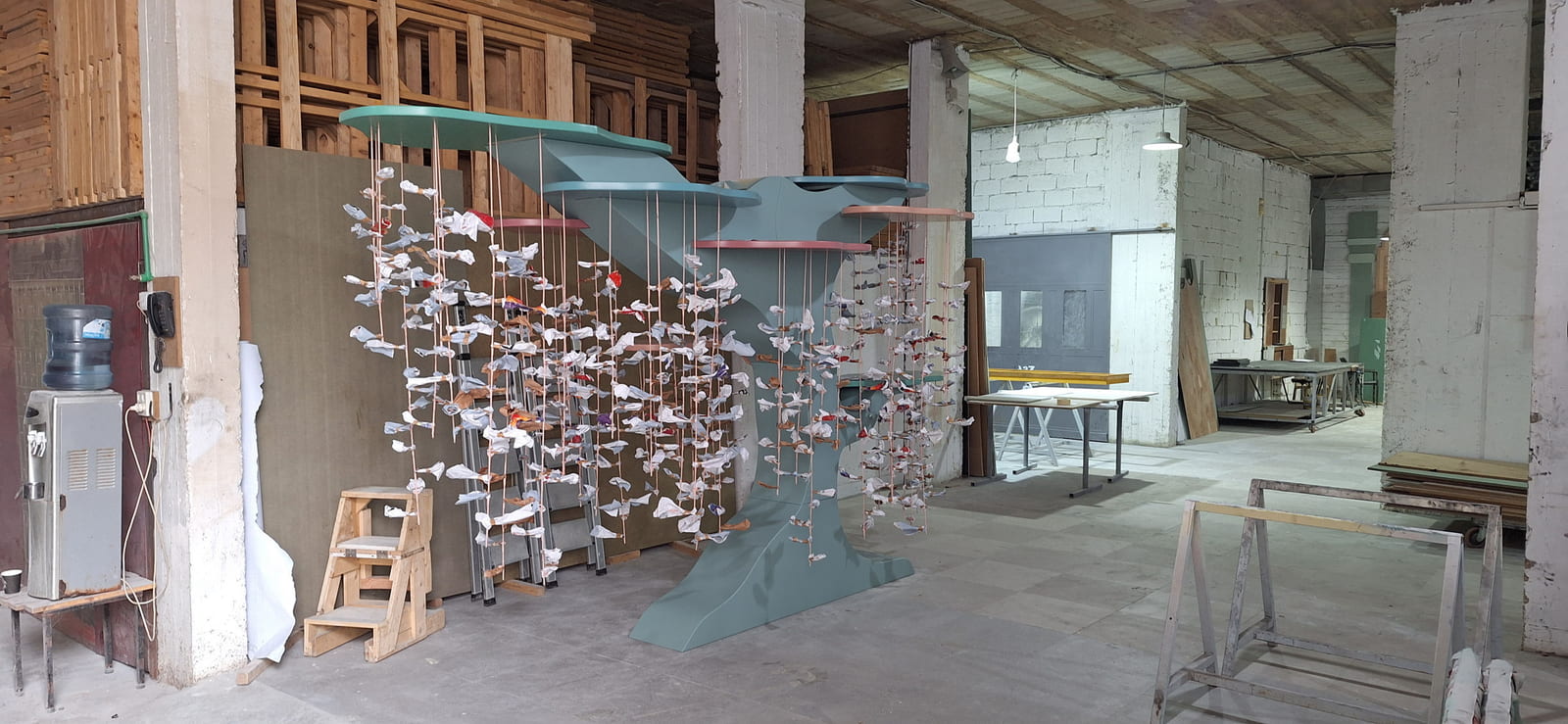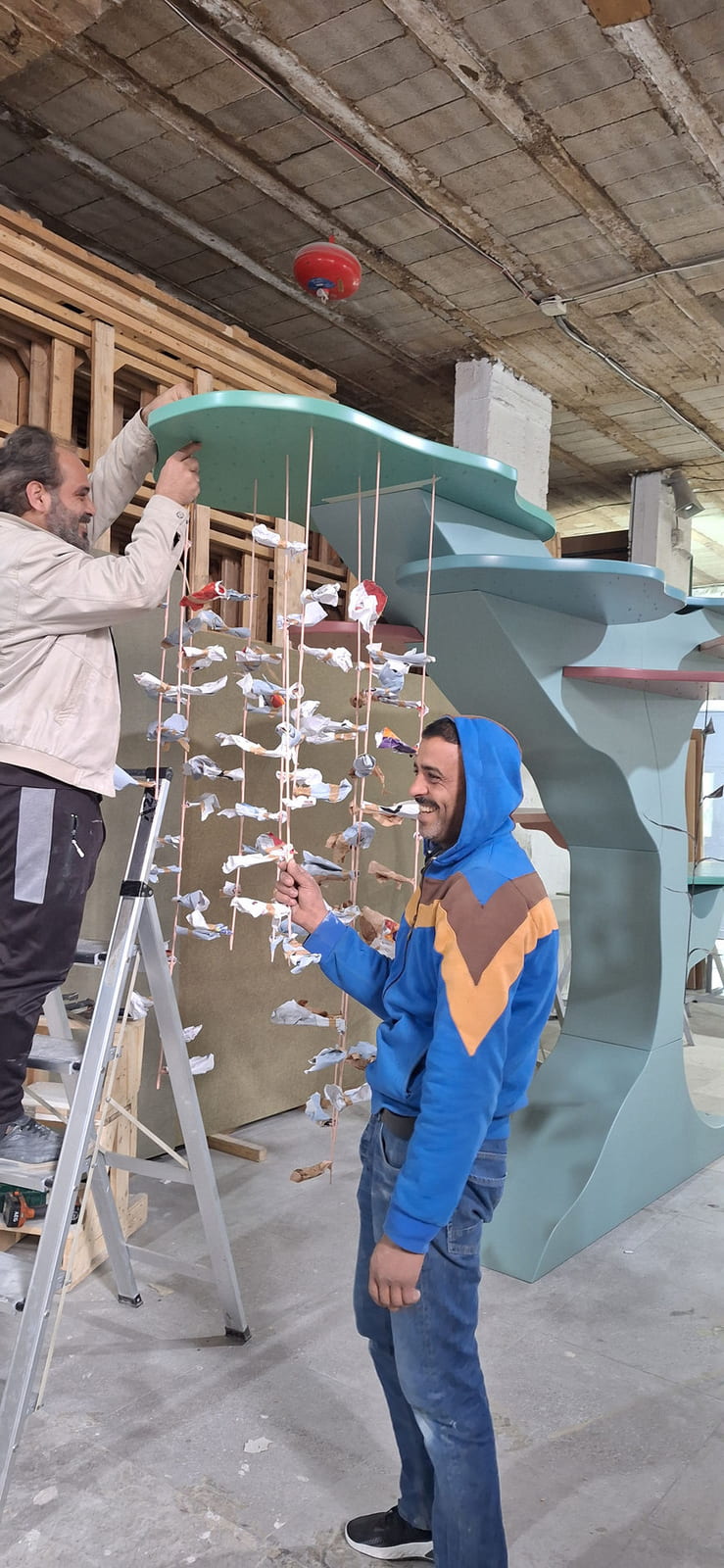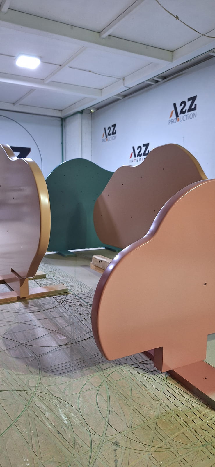 A custom wooden tree was designed and installed within a limited space inside a private apartment. The structure served as a dessert display, with steel-crafted leaves integrated to support and present the desserts, combining sculptural design with functional use.
