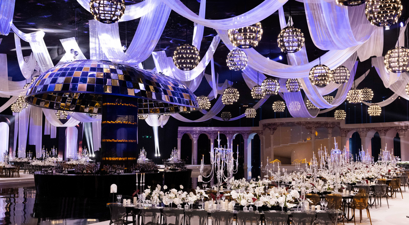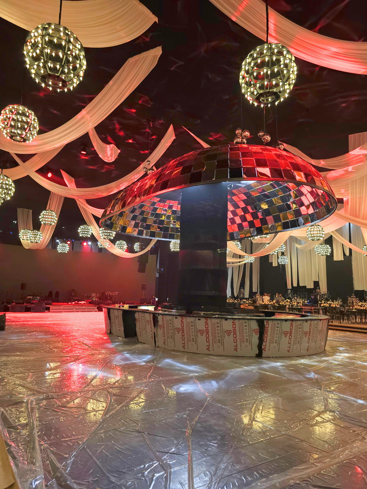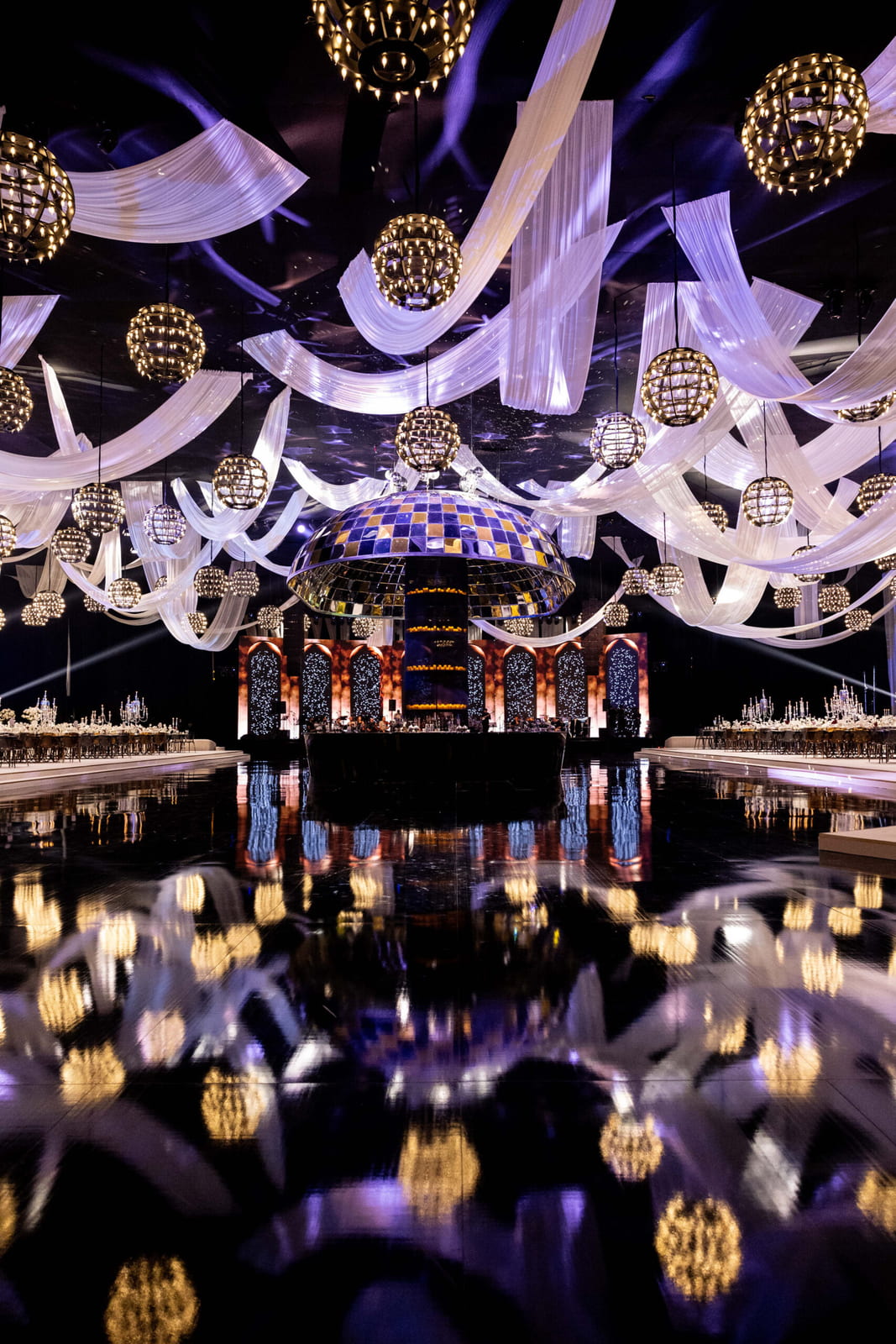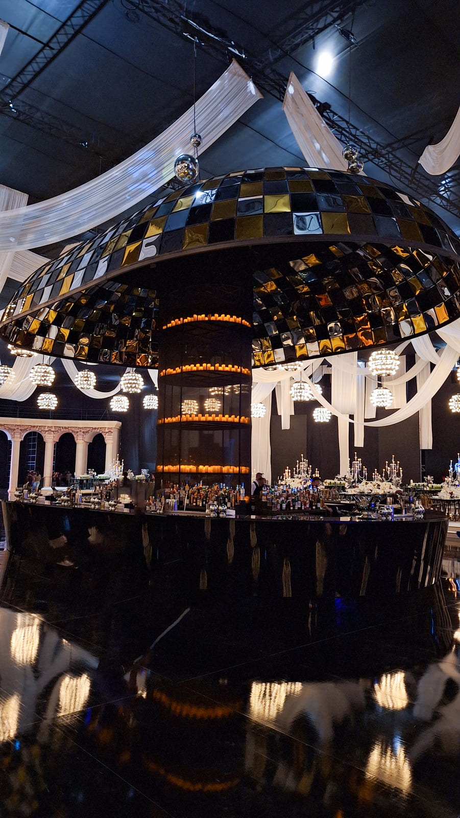 Executing this sophisticated wedding in just two months was a challenging yet rewarding endeavor. As the Production team, we worked closely with renowned planner ziad nassar to bring his vision to life. From the grand bridal entrance to the striking dome with its bar, every detail was meticulously executed. Custom lighting fixtures, a unique stage design, and polished black floor tiles were all part of the overall aesthetic, creating an immersive and luxurious experience for over 500 guests. Each element was carefully coordinated to ensure the wedding exceeded expectations.