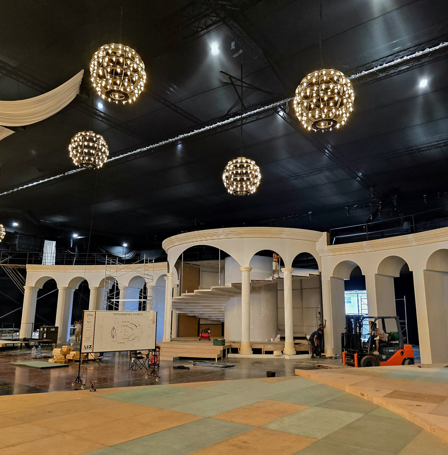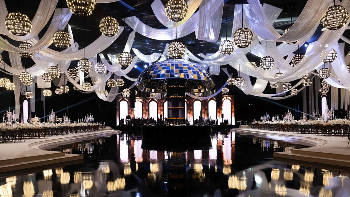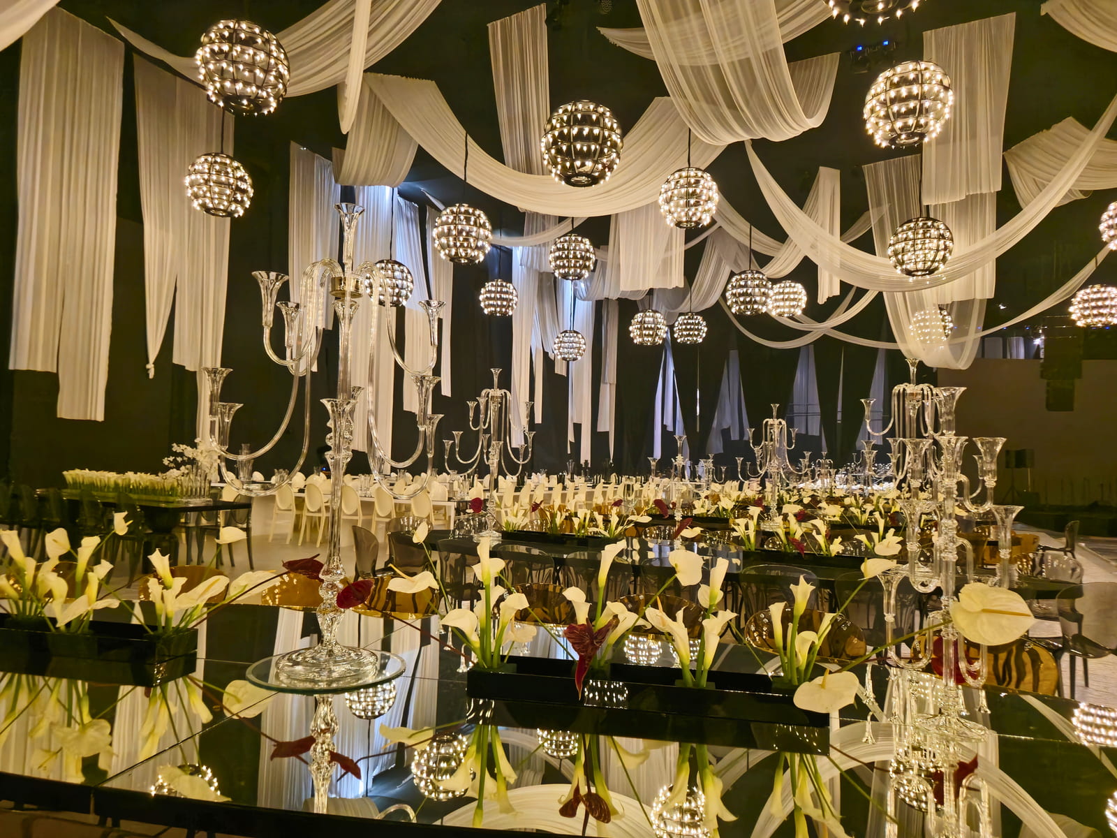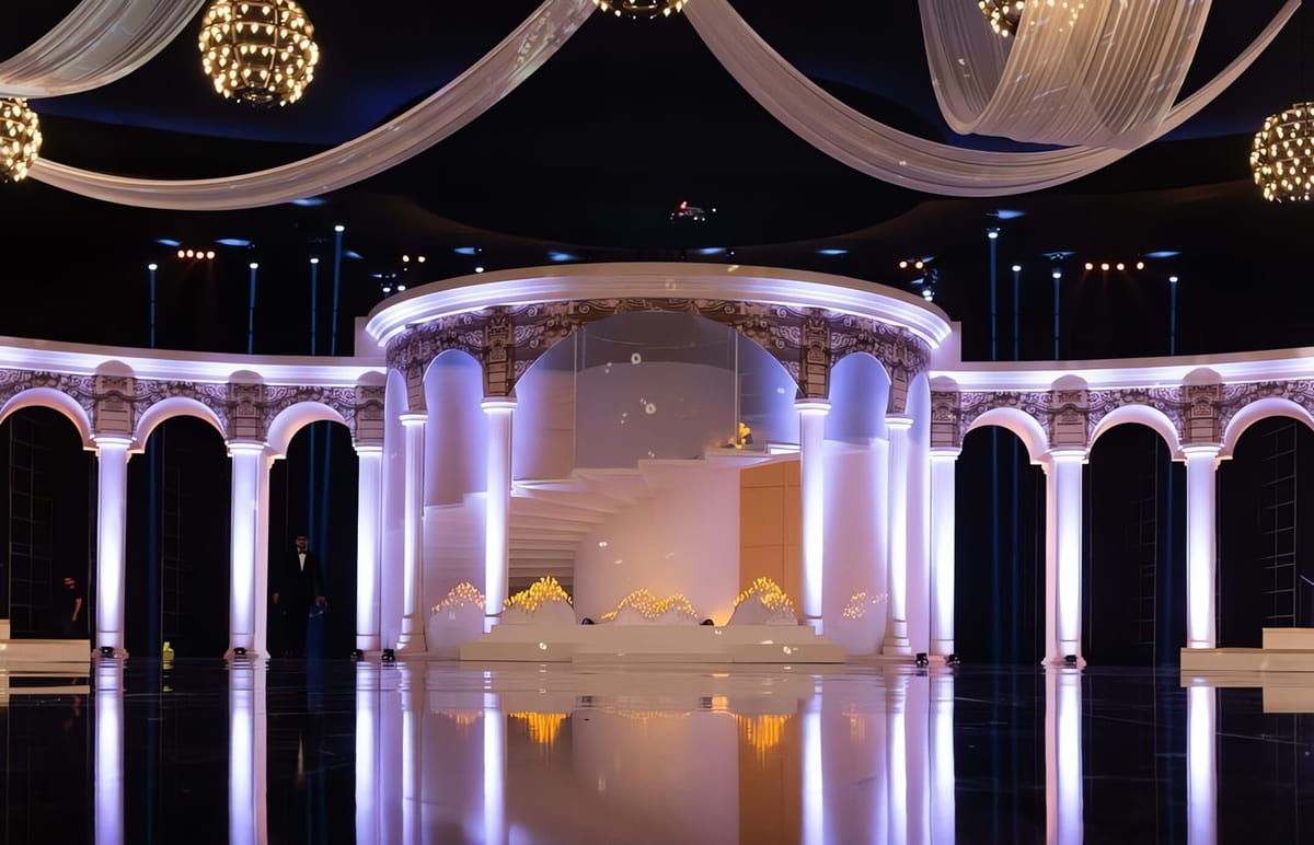Executing this sophisticated wedding in just two months was a challenging yet rewarding endeavor. As the Production team, we worked closely with renowned planner ziad nassar to bring his vision to life. From the grand bridal entrance to the striking dome with its bar, every detail was meticulously executed. Custom lighting fixtures, a unique stage design, and polished black floor tiles were all part of the overall aesthetic, creating an immersive and luxurious experience for over 500 guests. Each element was carefully coordinated to ensure the wedding exceeded expectations.